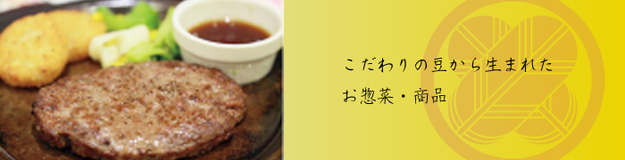 品質と製法にとことんこだわる豆心がつくったオリジナル商品です。食卓においしいおかずや、あまーいスウィーツまで豆を生かした商品がいっぱい。